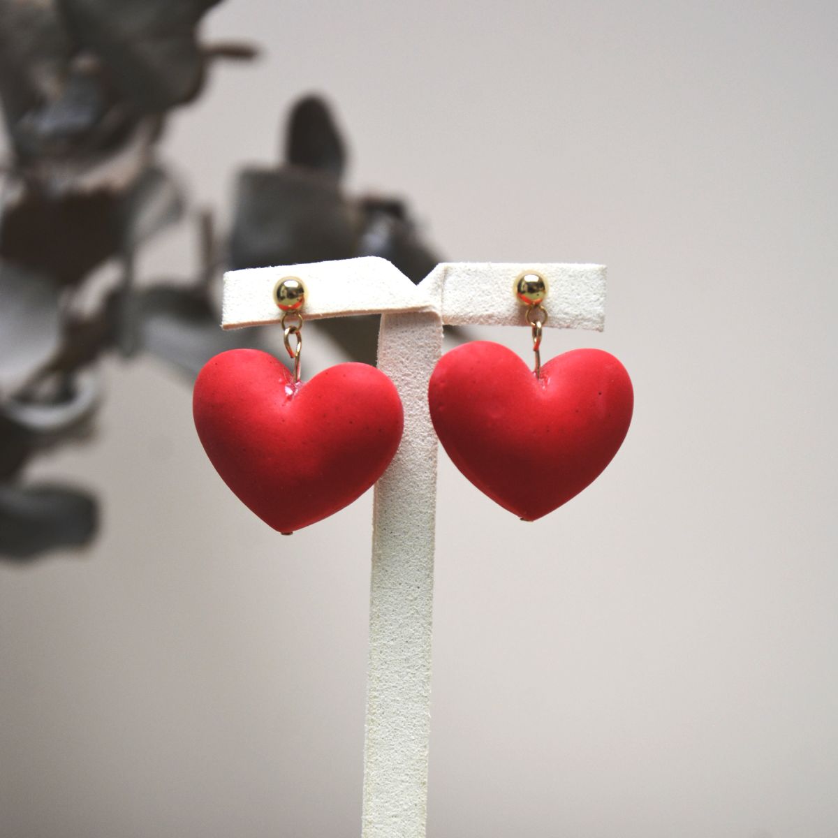 Ces boucles d’oreilles artisanales en forme de cœur bombé séduisent par leur couleur rouge vif éclatant et leur finition soignée. Conçues à la main en argile polymère, elles apportent une touche de romantisme et d’originalité à toutes vos tenues.